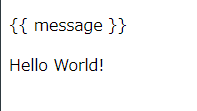 最初の<p>タグには、v-preが入っているので、{{ message }}がそのまま表示された。